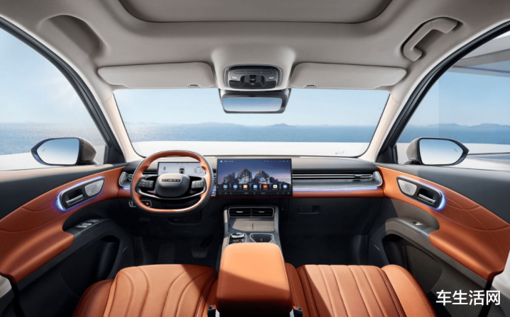 同时,新车内饰还设计了两套,这在行业里确实不多见,其中虎款座舱造型命名为晨曦山林环抱式座舱,豹款座舱造型命名为星河丛林灵动式座舱。分别配备15.6英寸和13.2英寸中控屏,内置8155车机芯片,采用HMI5.0交互设计。